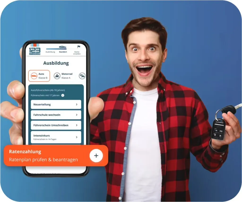 Mit unserer Ratenzahlung kannst du den Führerschein schon ab 149€ monatlich starten, ohne vorher anzusparen.