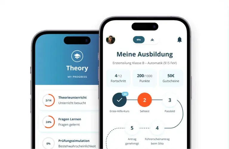 Fragen lernen. Theorie- und Fahrstunden einfach per App buchen. So einfach geht Führerschein heute.